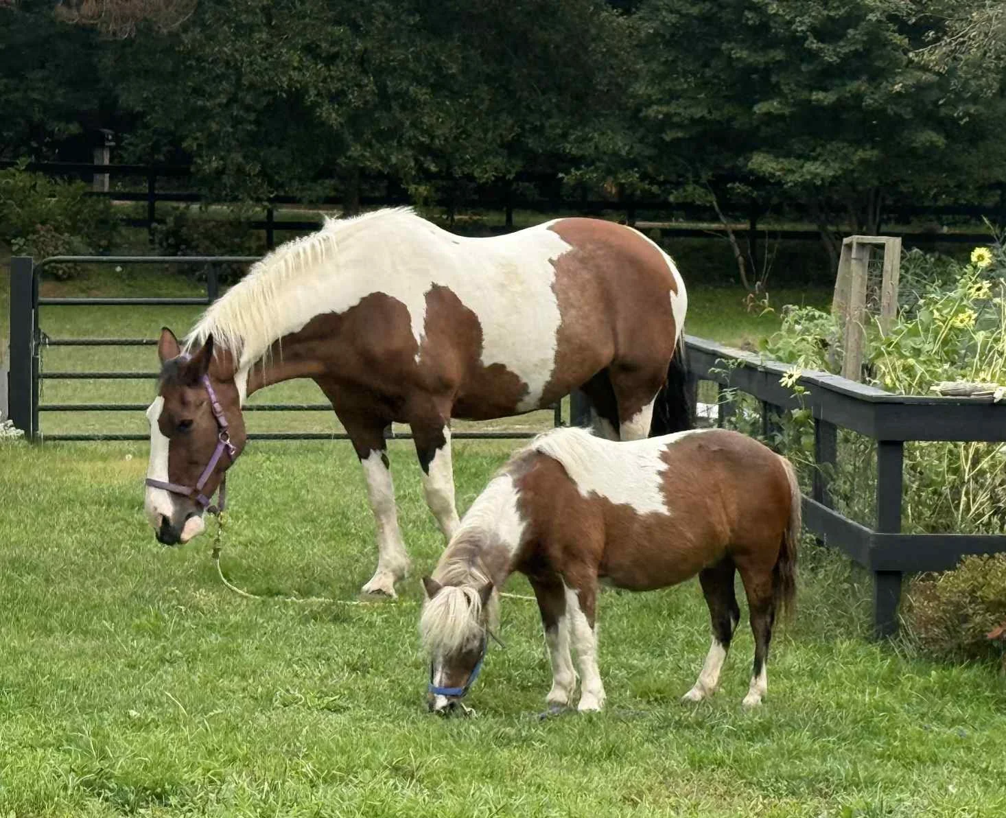 In 2017, Mills River Rescue took in a sweet 2 year old pinto mini. He came from the auction and very much needed love and care. He took a strong liking to all of the children. He was easy to take off property and was waiting to be adopted. Patti shared a post of his picture and when his future mom saw it, she knew he was the one. He soon became Sammy. He and his mom became a very close team and learned to drive together. Sammy has had lots of horse friends of all different sizes. He is adored by all everywhere he goes. He is loved, cherished and spoiled every step of the way as every mini should be.