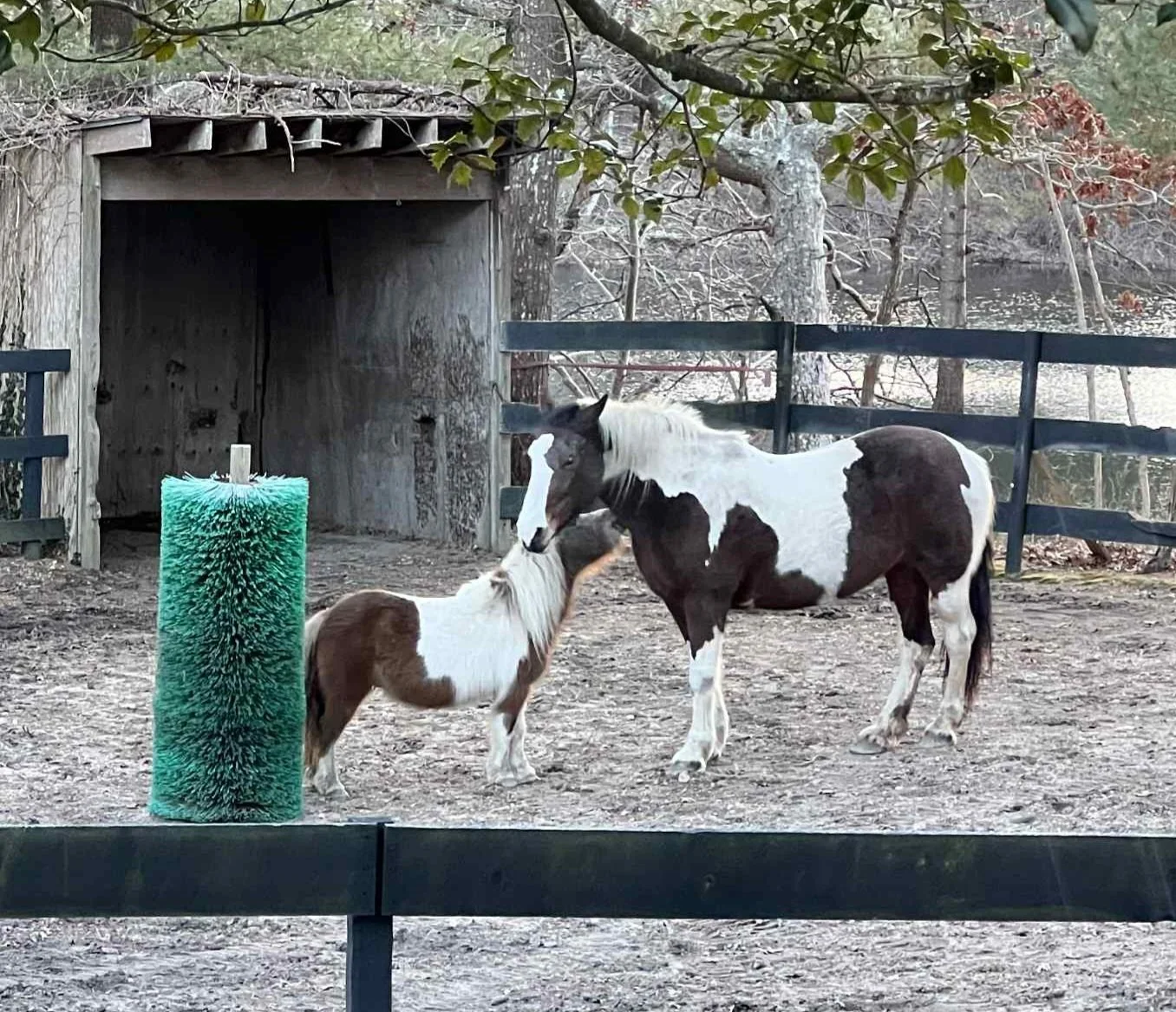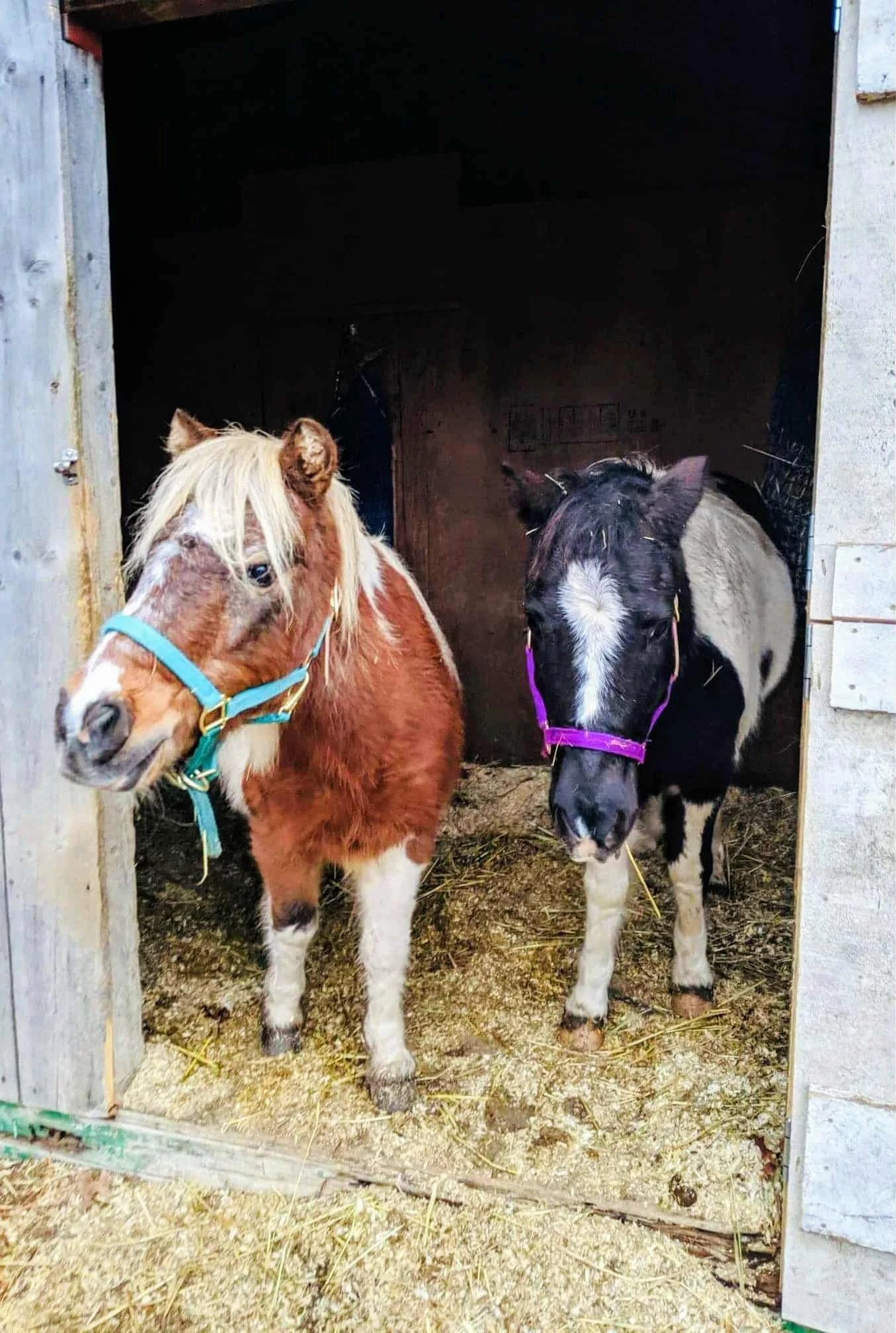 In 2020, this pair of sibling baby ponies were saved by Mills River Rescue from an auction in New Holland, PA, where some animals are sold for slaughter. They were terrified and feral, never having been handled by humans. Their coats were matted and covered in burs. Their feet had never been trimmed and they were bloated with worms. They were fostered locally on Cape Cod. Socializing them was a challenging process, but extremely rewarding because once they gained trust in humans, they became the sweetest and friendliest little darlings. Their foster family fell so deeply in love that they couldn’t help but adopt them! The family is very grateful to Patti at Mills River Rescue for saving Whinny and Neighthan, and so many others.